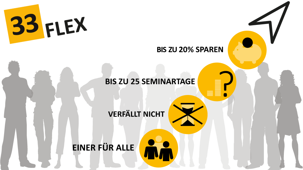 SO EINFACH: Sie wählen ein FLEX-Paket mit 5, 10, 15, 20 oder 25 Fortbildungstagen – natürlich zum Festpreis – und sparen dabei bis zu 20%. Fertig!