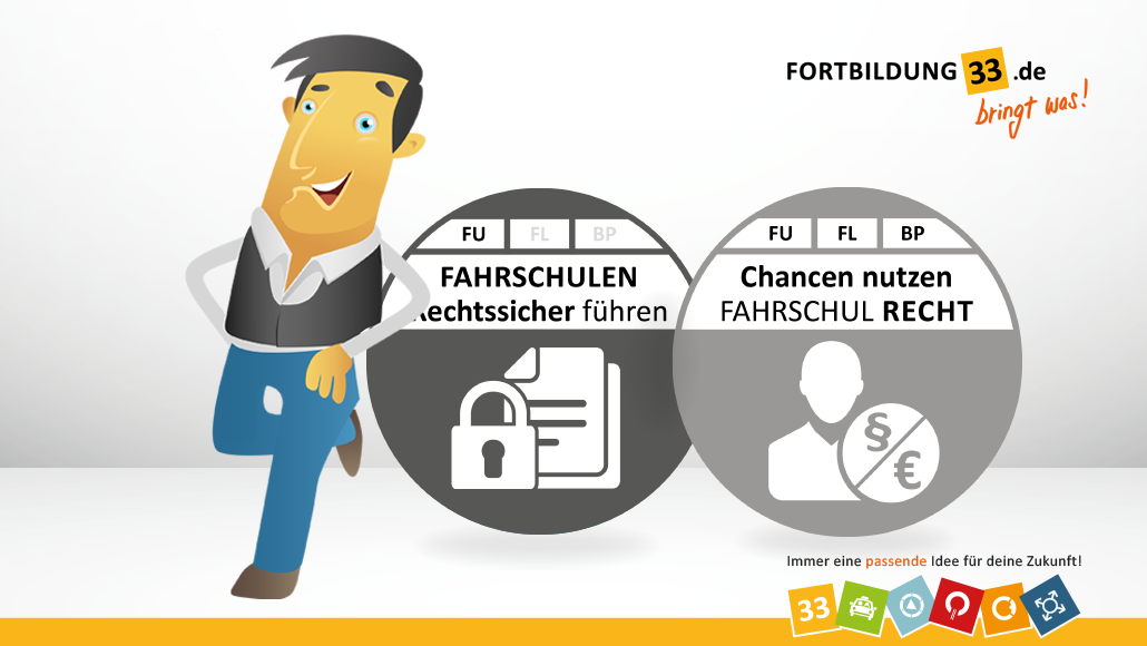 Rechtliche Anforderungen an das Führungspersonal von Fahrschulen nehmen stetig zu. Ob Mitarbeiter, Vertragsgestalter, Kooperationen, IT-Sicherheit oder Datenschutz: Gewinnen Sie mehr Sicherheit für Ihre tägliche Entscheidungen! Kompakt, praxisnah und mit vielen Fallbeispielen gibt dieses Seminar Antworten, Mustervorlagen und Tipps zu wichtigen Rechtsfragen in Fahrschulen. Einen detailierten Tagesablauf Ihrer Fahrlehrerfortbildung finden Sie hier.